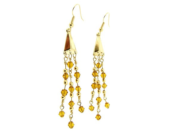 Lange oorhanger met 3rij Topaas Swarovski kristallen