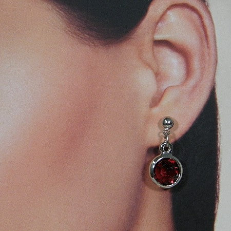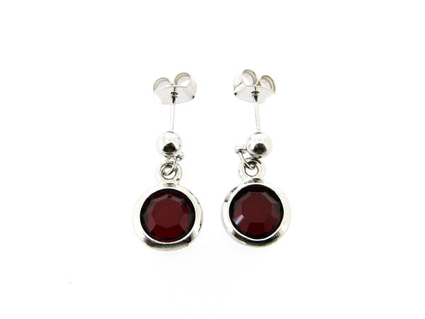 Zilveren roos geslepen robijn kristallen oorhanger, charmante zilveren Swarovski oorbel met roos geslepen robijn kristal, rond 10mm lengte 20mm.